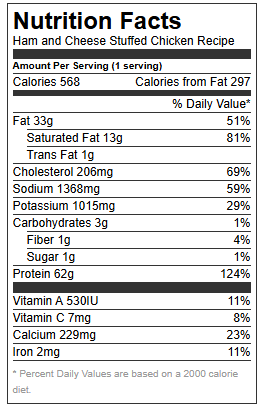 - Stuff each chicken breast with 1 slice of ham and 1 slice of cheese.4 slices deli ham, 4 slices Provoline cheese