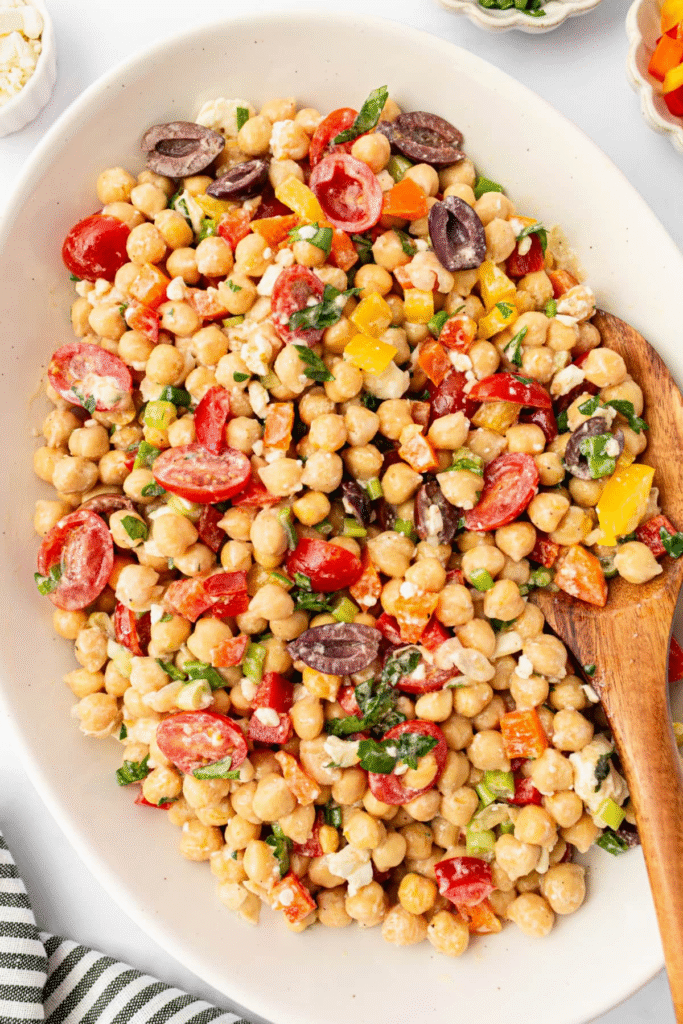 The Mediterranean Chickpea Salad is very versatile. It can be served in many ways.