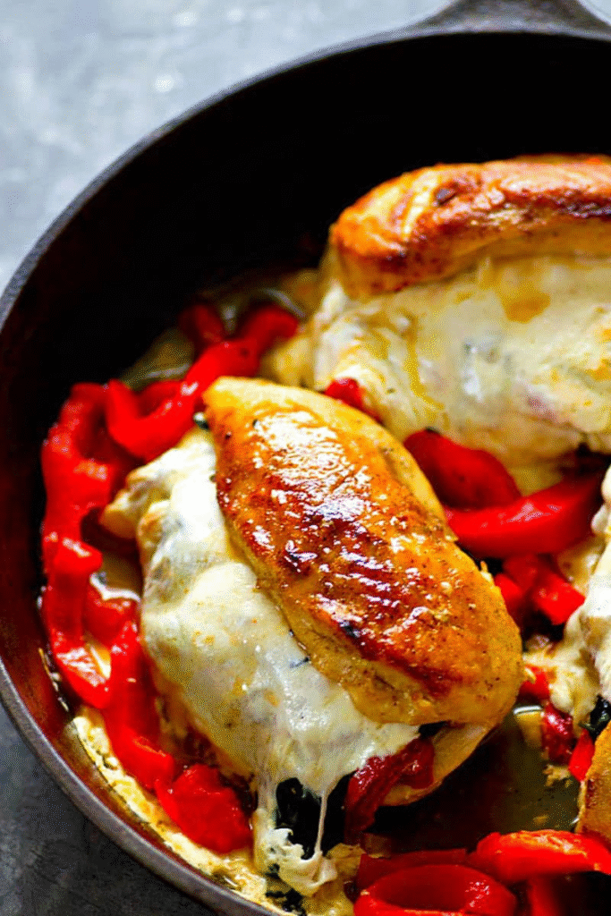 Roasted Red Pepper Spinach Mozzarella Stuffed Chicken